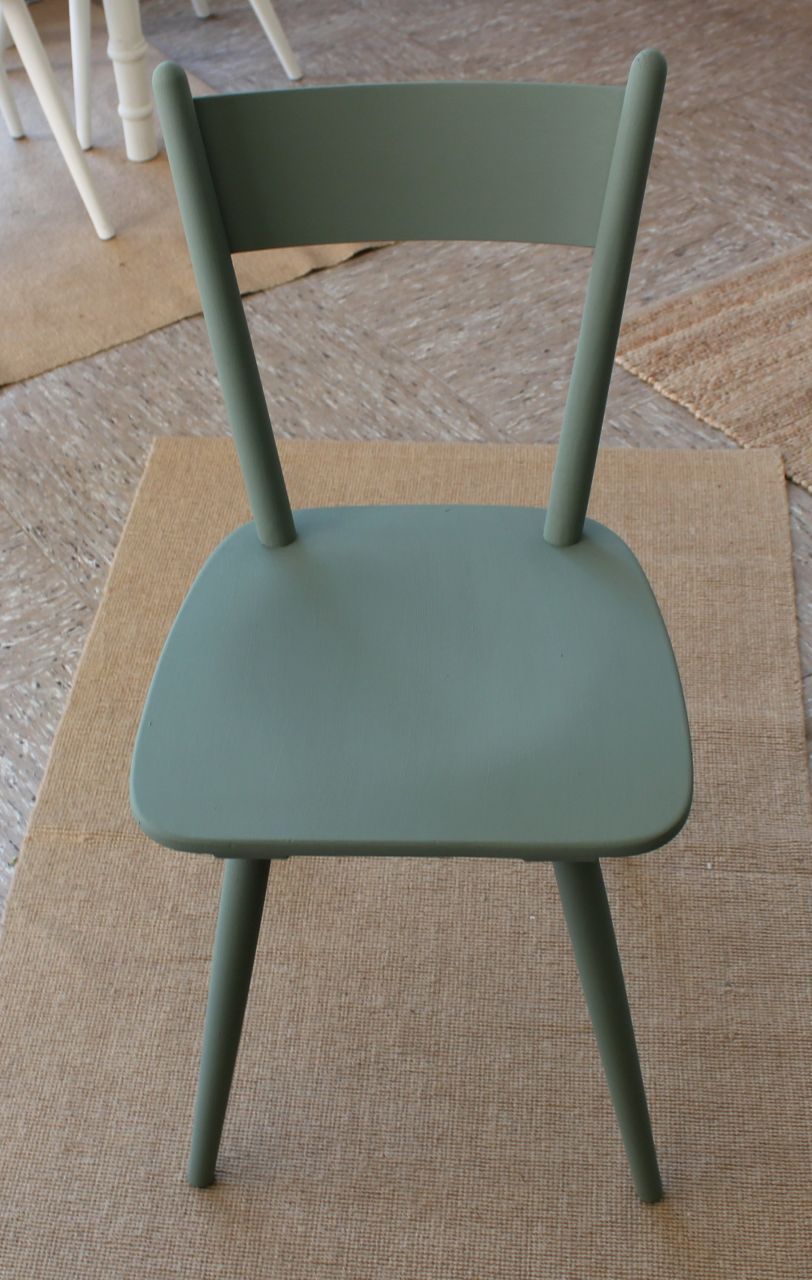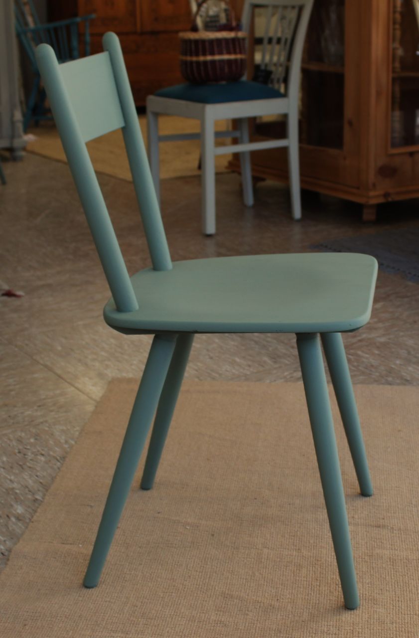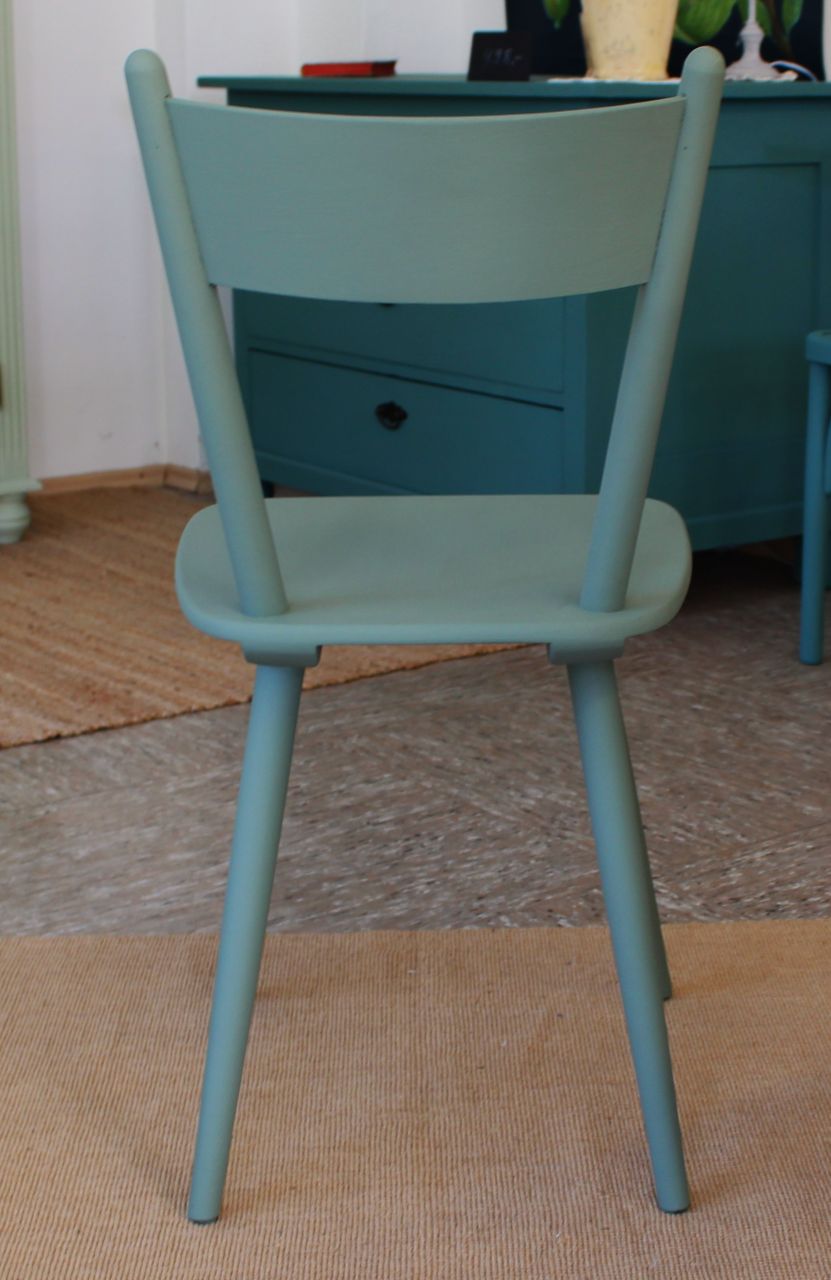 Schöner, stabiler Holzstuhl, vermutlich aus den 60er Jahren. Gestaltet haben wir mit Kreidelack (Painting the Past, Olive). Das zweite Foto trifft den Farbton noch an Besten. Momentan haben wir vier Stück…