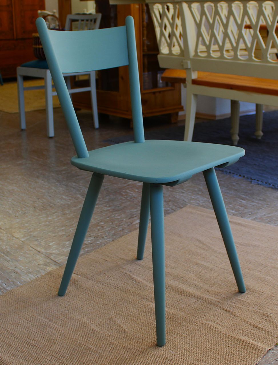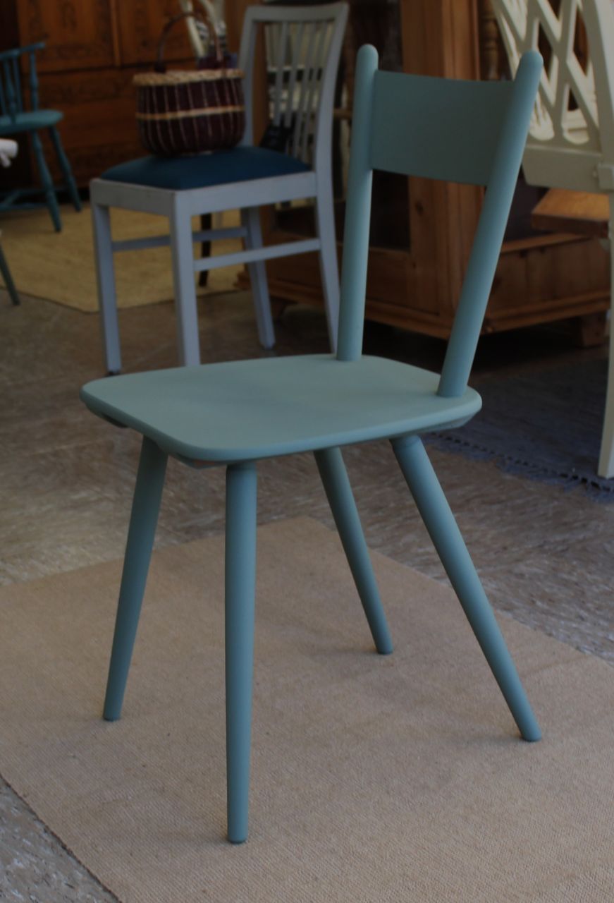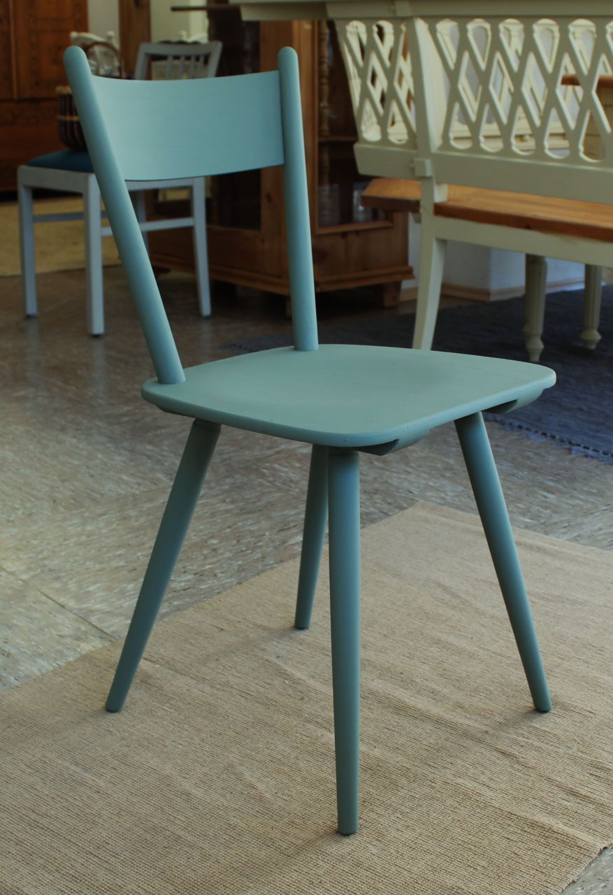 Schöner, stabiler Holzstuhl, vermutlich aus den 60er Jahren. Gestaltet haben wir mit Kreidelack (Painting the Past, Olive). Das zweite Foto trifft den Farbton noch an Besten. Momentan haben wir vier Stück…